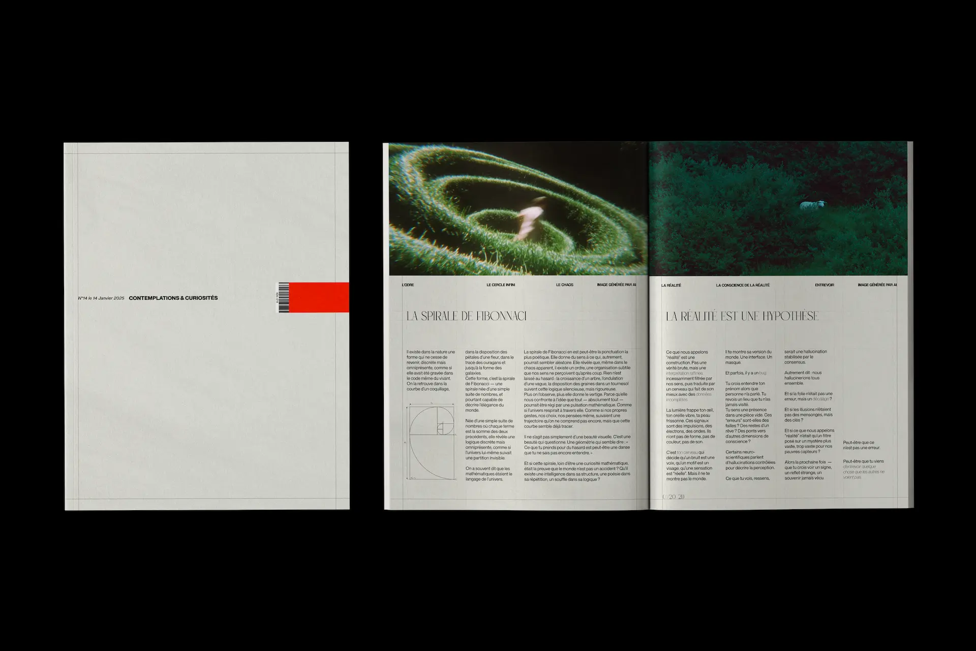 Each issue invites the reader to slow down, observe, and follow intuition.This project combines intellectual exploration with art direction — each page is crafted as a space where content and form converse.